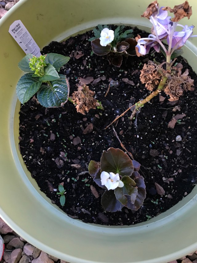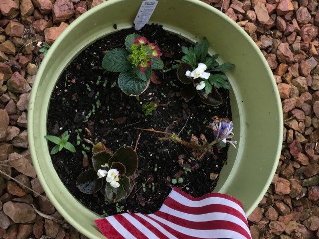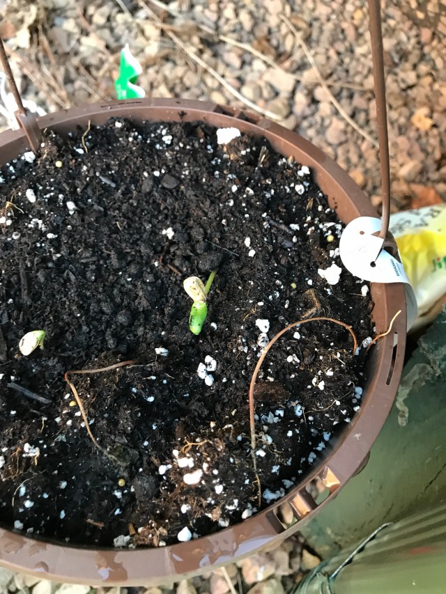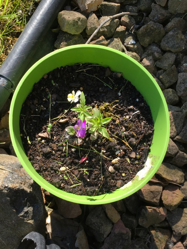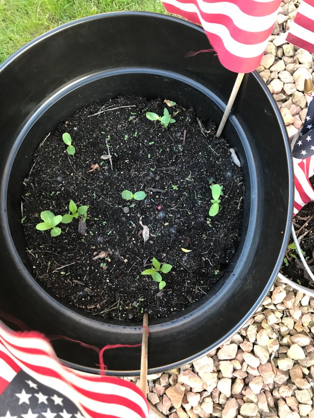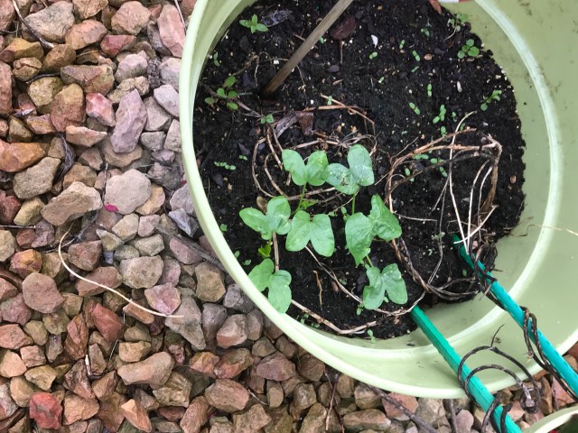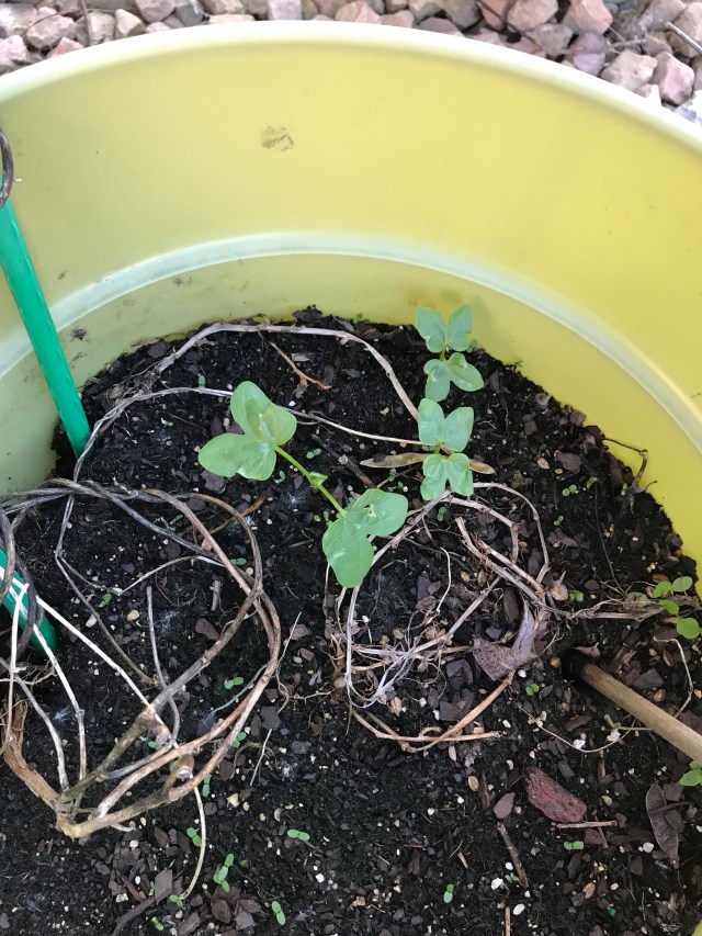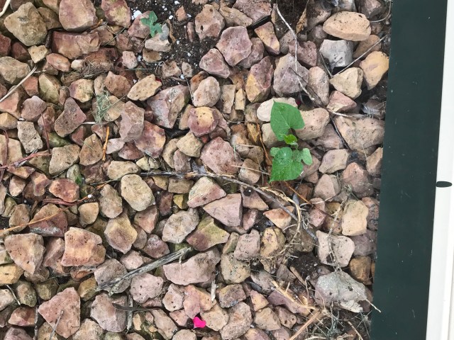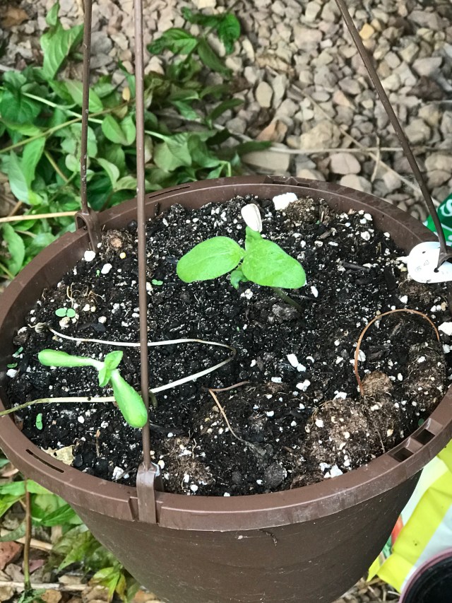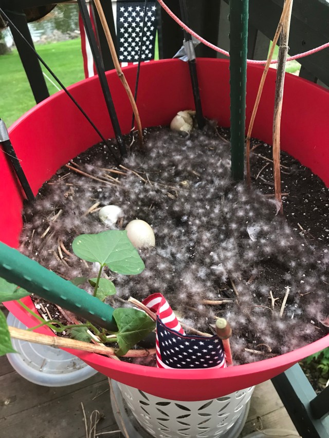 I’ve finished planting my terrace garden now after the mallard duck had 6 eggs hatch in one of my terrace pots. In the nest pot there was one Morning Glory plant started all on its own from last years seed pods.