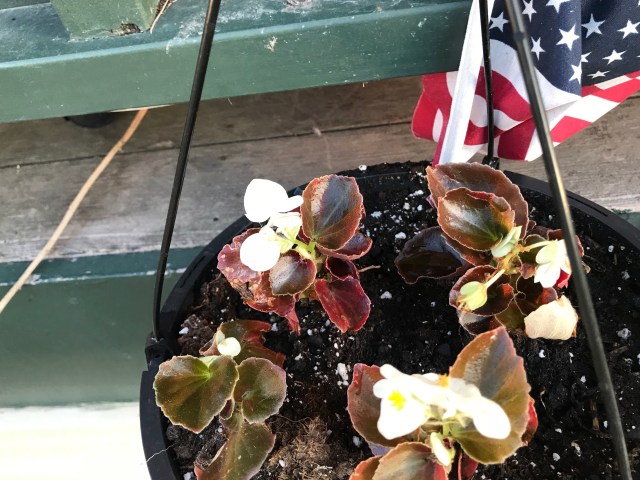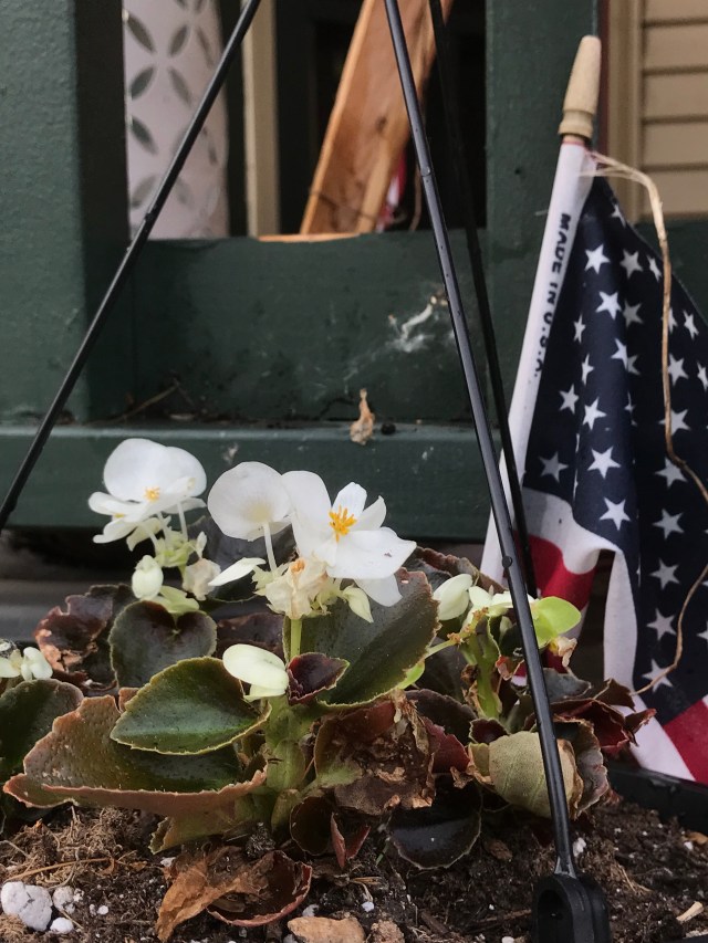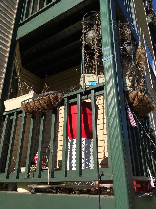 Another bud is forming behind by the red pot – that one has a sunflower seed planted with big hopes.
