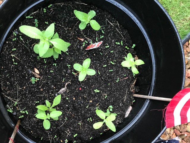 Volunteer Petunias and I planted some seeds for these today so hoping they germinate ok.