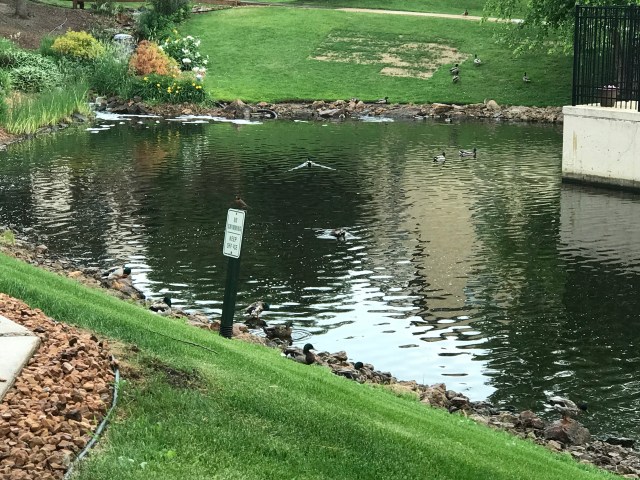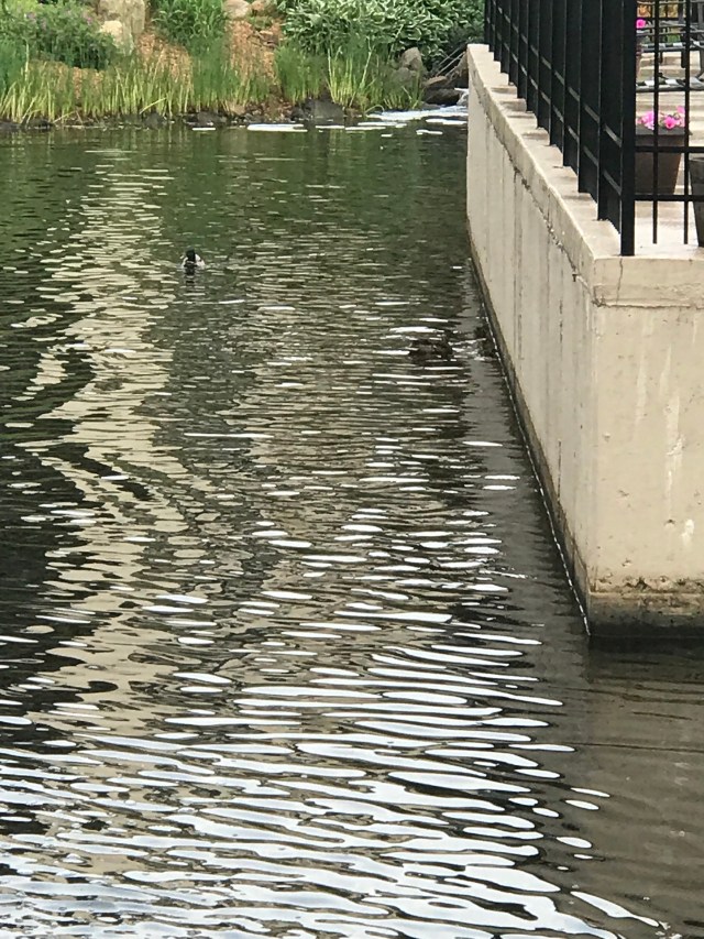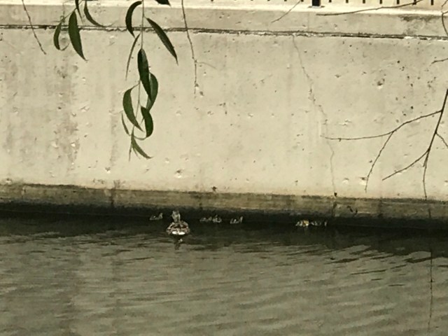 Mother duck had them across the pond from the bank so this is a long zoom shot with my iPhone 7 Plus.