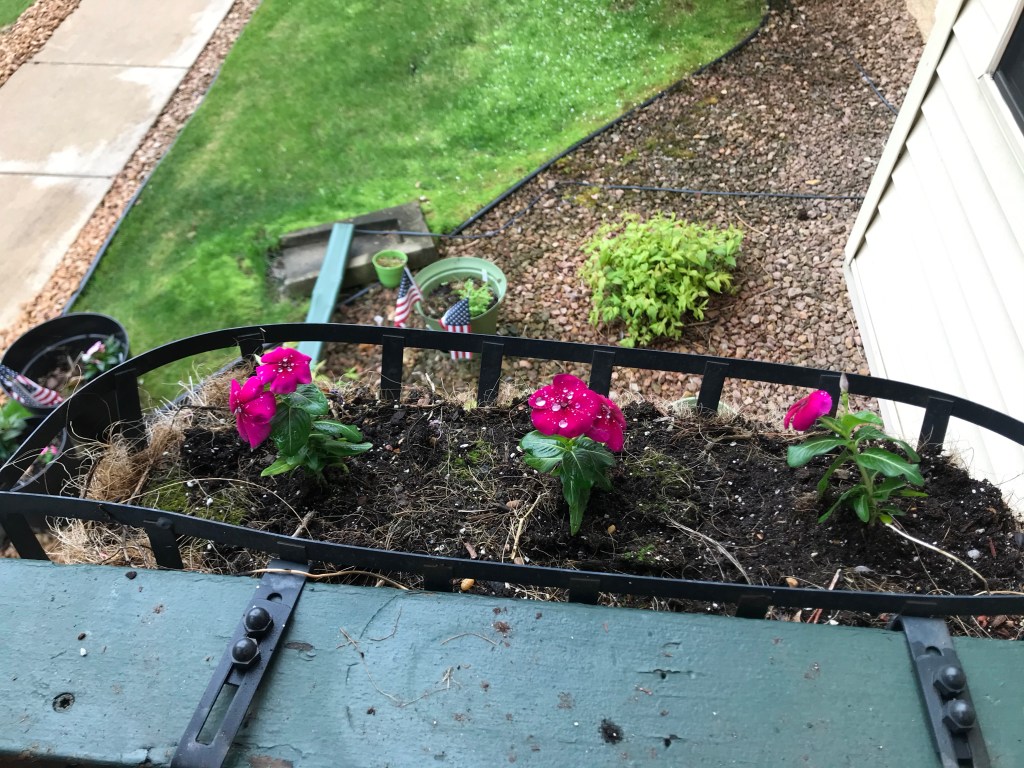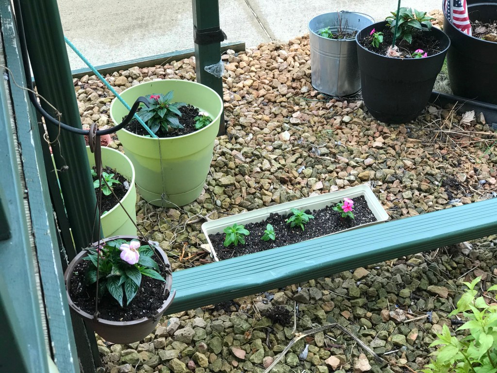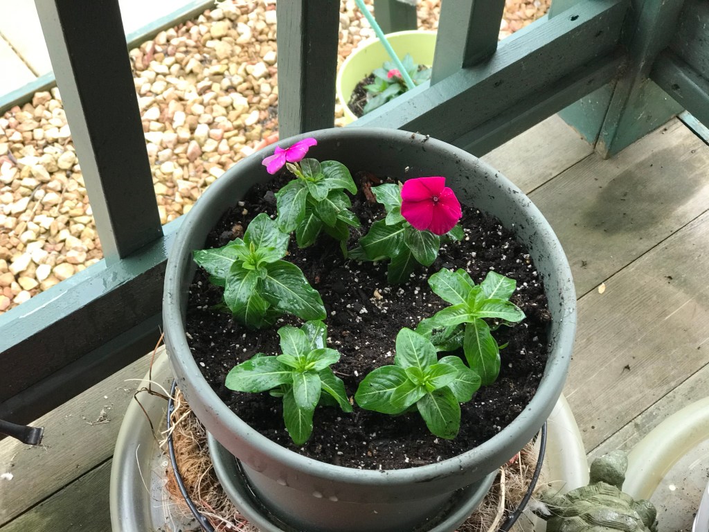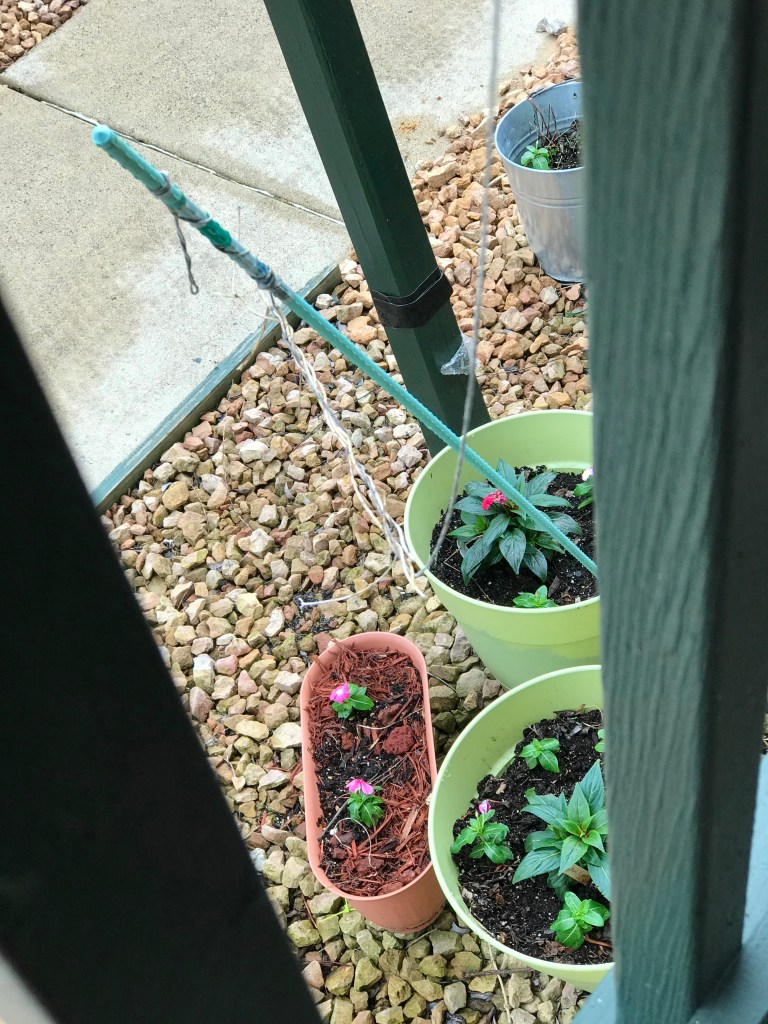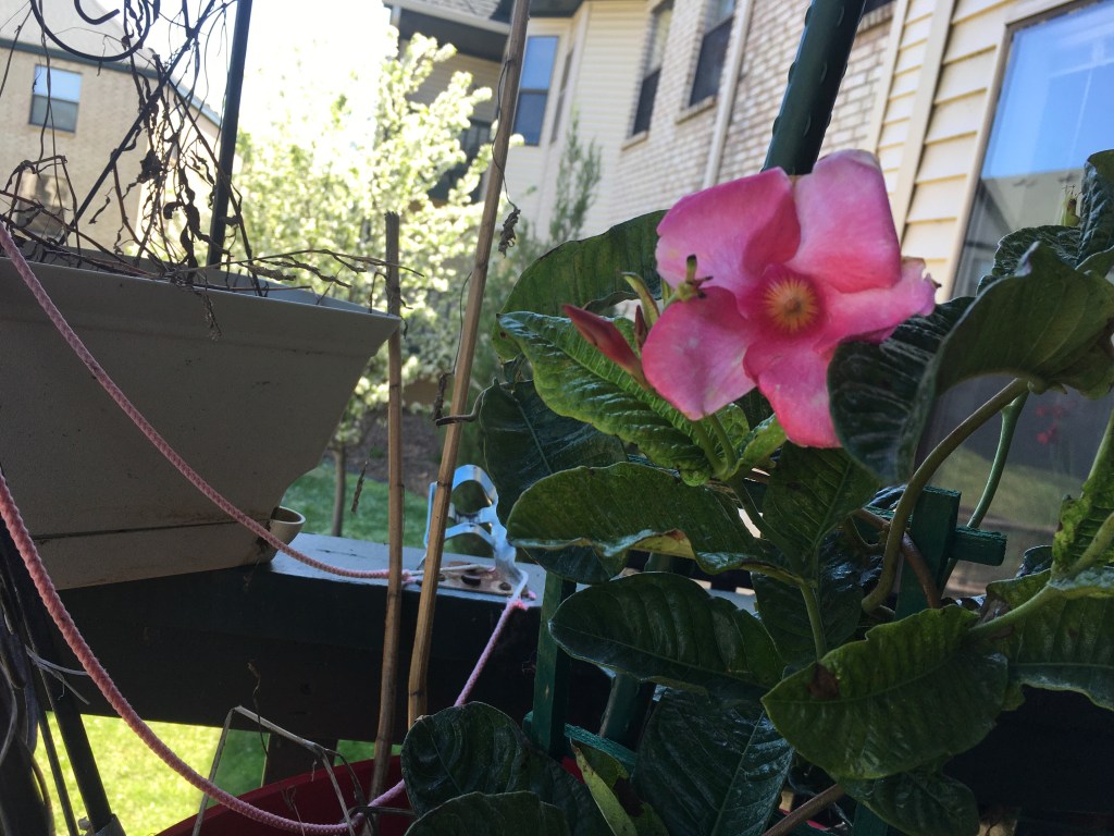 Climbing plant – Mandevilla – Alice Dupont Purchased from local nursery along with 7 Impatient plants pictured above.