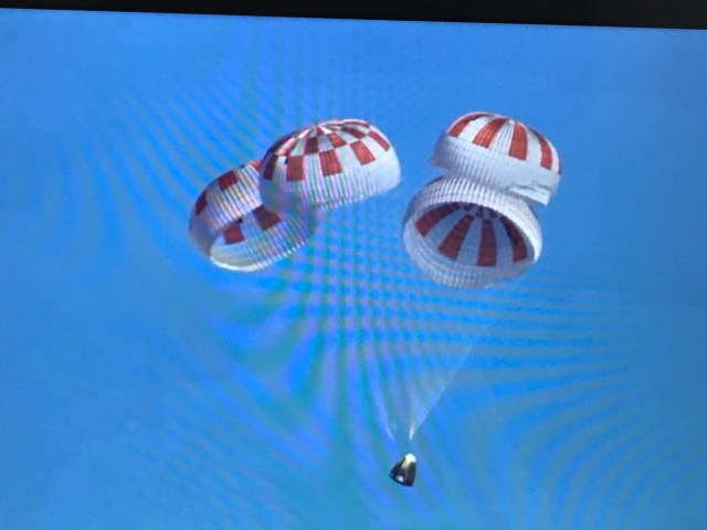 I took this picture when playing YouTube video of the test return of the SpaceX Dragon Capsule. See the link in my Life After 50 blog spot link above. Check out all the NASA and International Space station videos on YouTube well worth the time and travel via video to lower Earth Orbit.